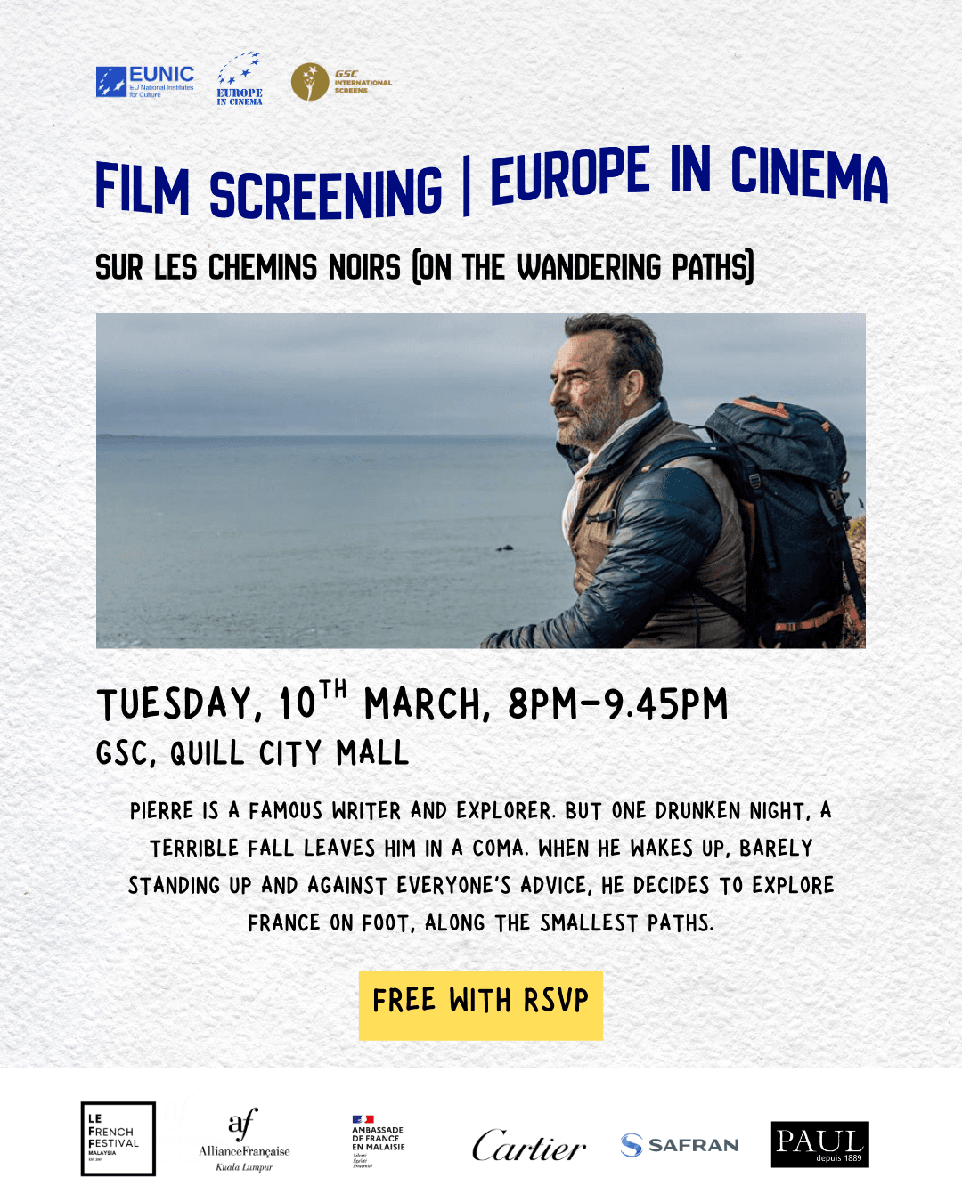 In conjunction with Francophonie month, join us for a Free French film screening Sur les chemins noirs this March 10th at GSC Quill City Mall, brought to you by AFKL, as part of EUNIC Malaysia.